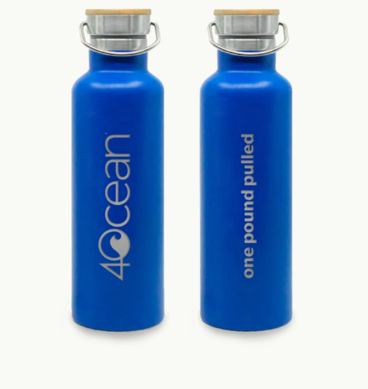 Did you know that just one reusable bottle eliminates waste from an average of 345 single-use plastic bottles? Every reusable bottle purchased funds the removal of one pound of trash from the ocean, rivers, and coastlines 18/8 kitchen-grade stainless steel Double-walled and vacuum-insulated to keep drinks at their ideal temperature Leak-proof bamboo cap with easy-carry stainless steel handle Use with cold or hot liquids Holds 750mL (a little over 25oz) Etched with 4ocean logo and our "One pound at a time" mantra How your purchase makes a difference… Every product purchased funds the removal of one pound of trash from the ocean, rivers and coastlines 4ocean captains and crews recover trash from the ocean and coastlines seven days a week All of 4ocean products are designed, sourced, and produced with an ocean-first mentality. Component manufacturing process and recycled content are audited and verified by Green Circle®.