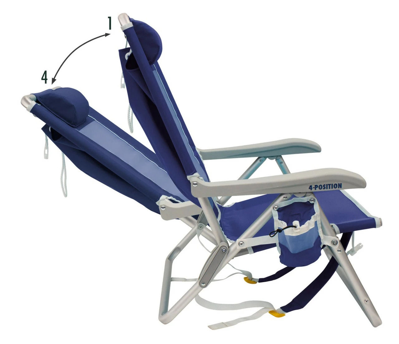 The Backpack Beach Chair is perfect for days by the water. Relax with a 4-position backrest, head pillow, and drink holder—and your toes in the sand. Backpack straps Storage pouch 4 position backrest Drink holder Pillow Double Nylon Mesh for airflow