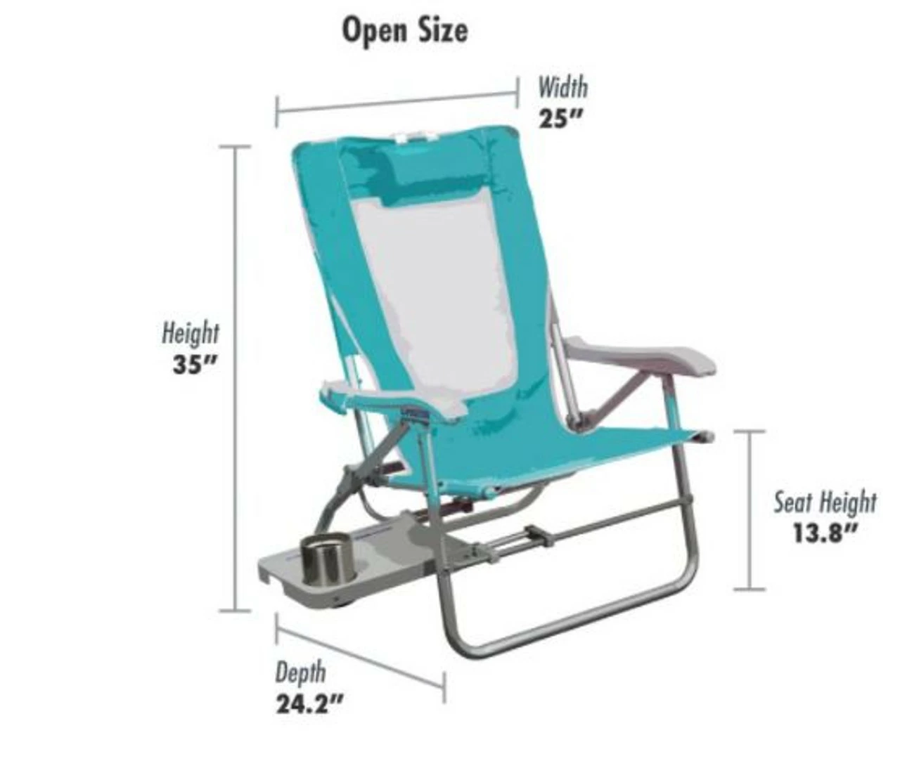 SKU: GCI-0141-1 Categories: Chairs, GCI Outdoor™ Big Surf Backpack Chair with Slide Table and SunShade™, Mid Seat Chairs (12-17in)