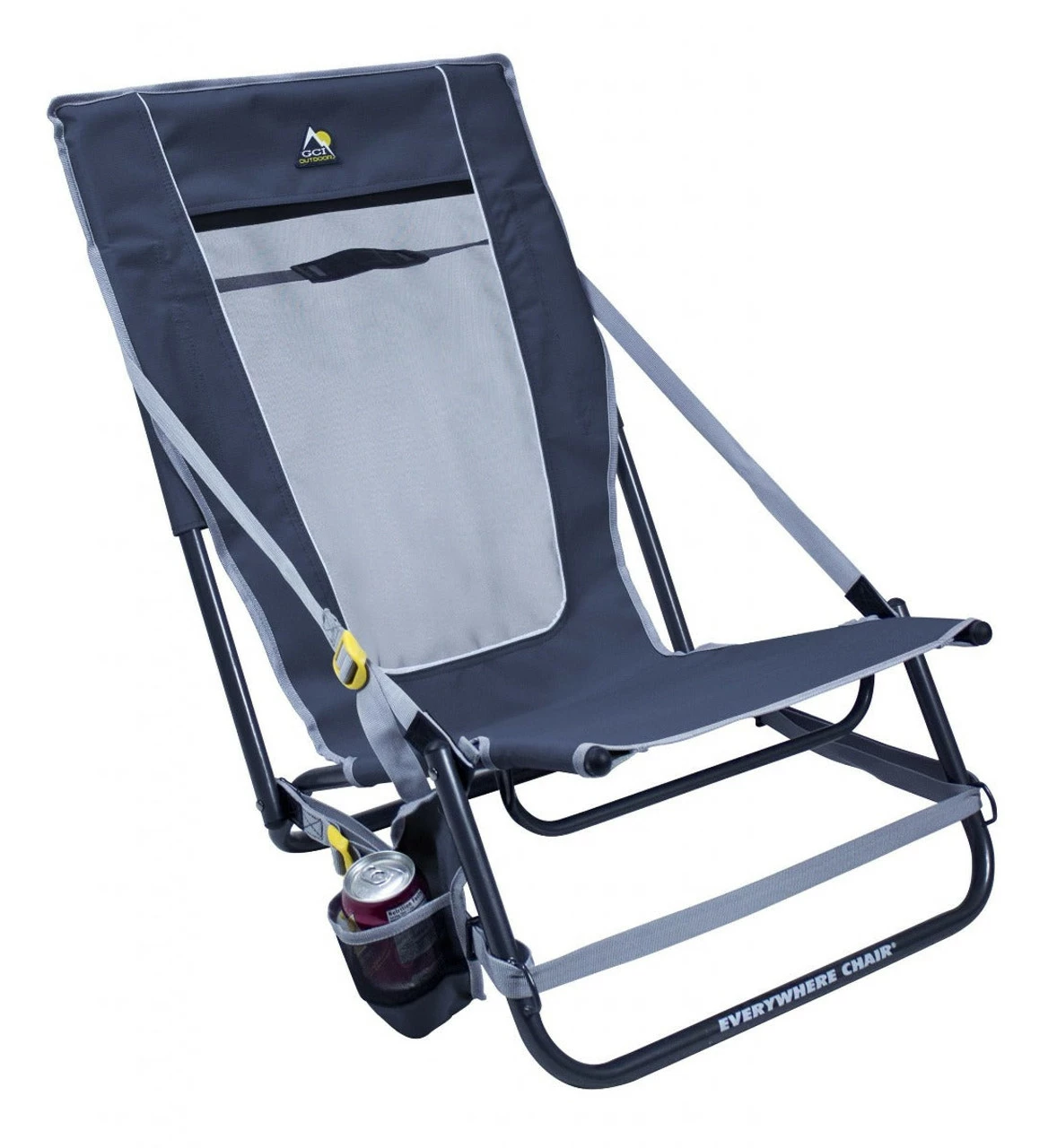 A folding recliner chair that sits securely on both sloped and flat terrain. Conquer any hill, adjust your seat to a comfortable angle, and enjoy!Patented Hillside Adjustment system adjusts to slopes or terrainBackComfort Technology adjusts backrest to a position of personal comfortAuto-Fold Shoulder strap for easy opening, closing and carryingMesh backrestBeverage holderPowder-coated steel frame