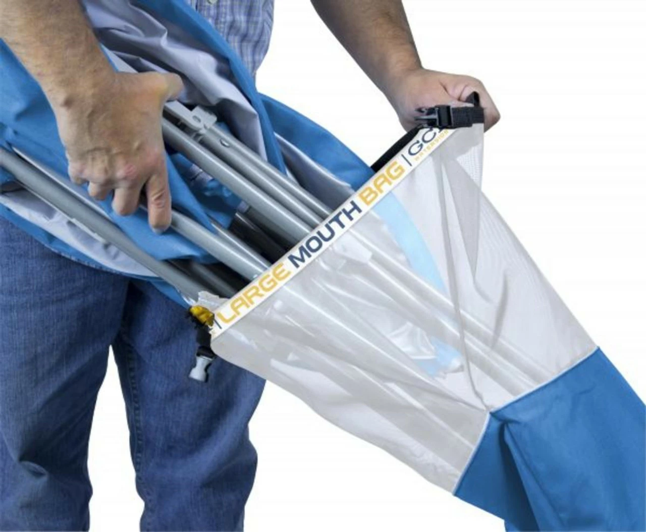 A folding beach chair fit for a captain! Hard armrests, an extra-wide tension seat, and an adjustable UPF 50 canopy give you the support and comfort you need for a long day on the water.Aluminum and steel frameSPF SunShade UPF 50 fabricLarge bowed shape and rotates a full 270 degrees front to backHard arms for additional supportBroad backrest and seatBeverage holderLarge Mouth Bag with backpack strapsBreathable nylon mesh and polyester fabric