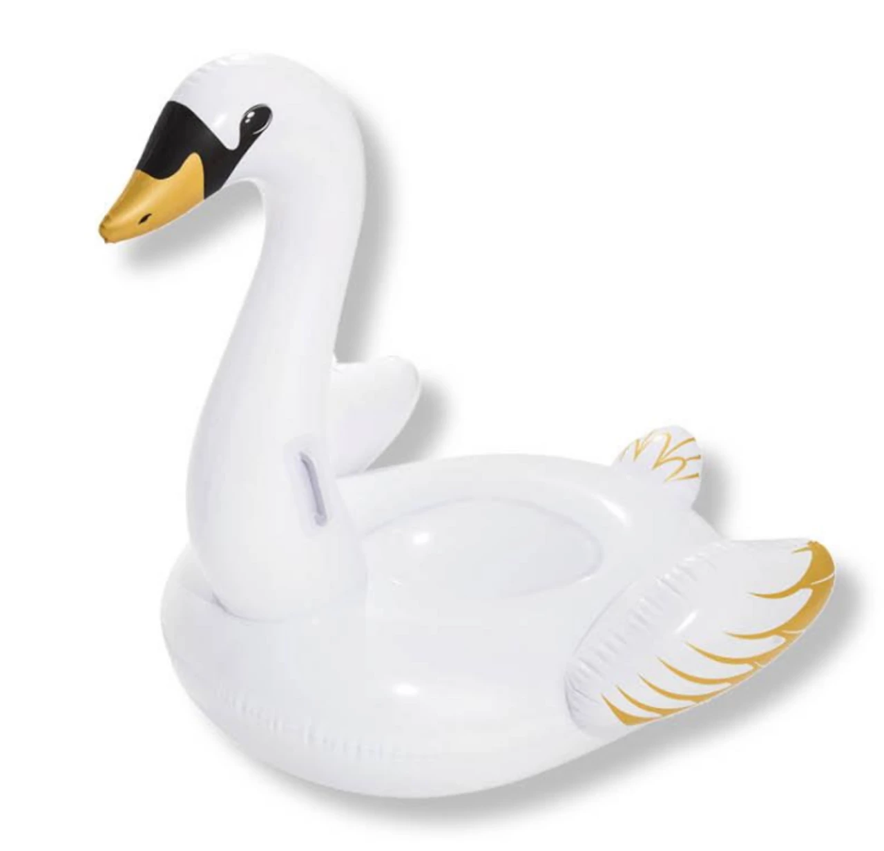 Stay elegant whilst in the pool or at the beach with this luxury swan rider. The sleek and stylish white design combined with the unique gold glitter accents give this ride on a luxurious feel ride on is as practical as it is stylish! With heavy-duty handles and a construction of pre-tested vinyl means you can maintain grip and feel safe and secure whilst on the water.