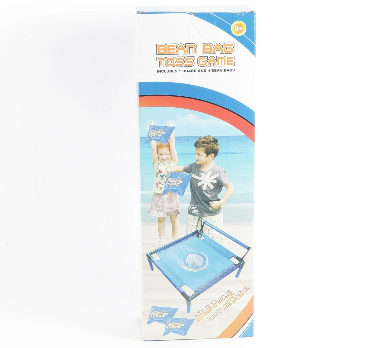Includes 4 blue bean bags and 1 board to throw bean bags at Ages 6 and up Throw it! Toss it! Have fun in the sun! Square board