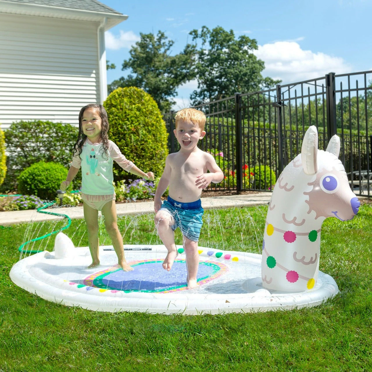 It's amini-waterparkjustfor kids! Inflates in minutes for hours of fun 360-degree sprinkler streams surround the built-in splash pool Connects to any standard garden hose Easy setup: no tools or water pumps needed Sprinkler strength can be easily adjusted by the spigot Heavy gauge PVC to endure the way kids play Deflates for compact off-season storage These Splashy Sprinklers combine a splash pad with an array of sprinklers for refreshing backyard fun. It creates a 360-degree soak zone for hours of imaginative play that is ready in mere minutes. Just inflate, connect a hose, and go! When fully inflated they are a 6-foot-long miniature water park that can be controlled with the twist of your spigot's knob.