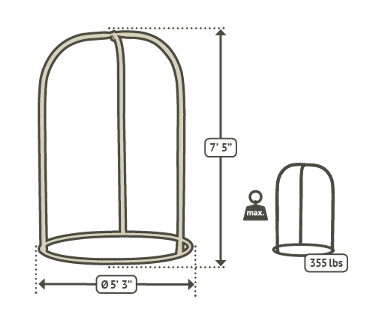 Our kingsize chairs are made with powder-coated steel pipes that are weather-resistant and therefore ideally suited for the backyard, garden, patio or pool deck. The seat height can be adjusted as needed with an integrated rope. Large enough for optimal freedom of movement, even with a hammock chair kingsize. -Total Height:7 ft 5 in -Stand for various size hammock chairs – 355 lb weight capacity -Stand for various size hammock chairs – 355 lb weight capacity -Steel is durable and easy to clean -Quickly & easily adjust the height -Total Height:7 ft 5 in