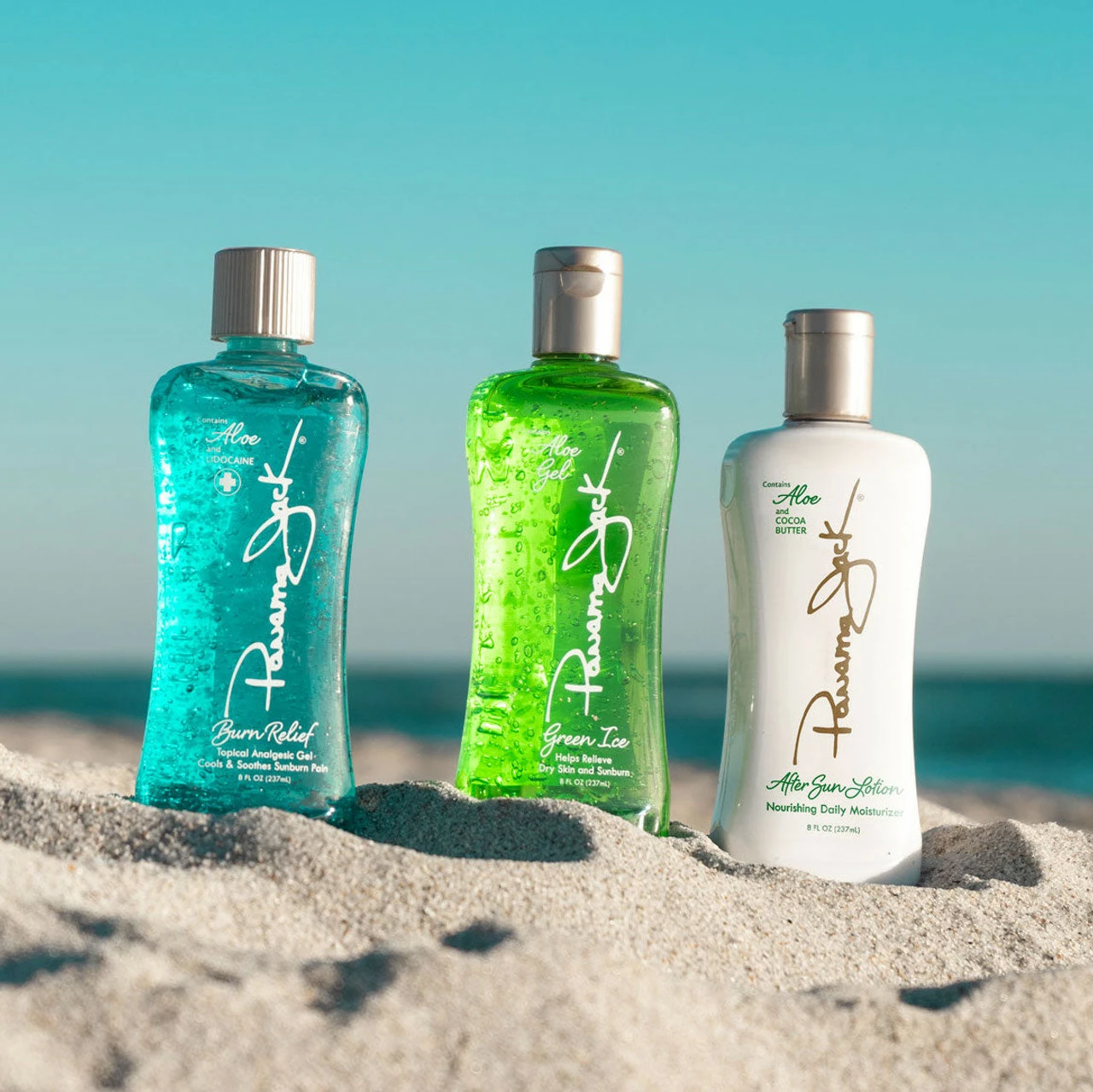 Escape Everyday®…Panama Jack Green Ice incorporates Aloe Vera gel to soothe, cool, moisturize and help relieve dry skin and sunburn symptoms. Helps to prevent peeling and prolongs your tan Contains no alcohol Multi-purpose, effervescent gel not only soothes sunburns, but can help to treat cuts, clear up rashes, take the stings out of bug bites, calm shaving burns and much more 8-ounce new consumer-friendly bottle with dispensing cap