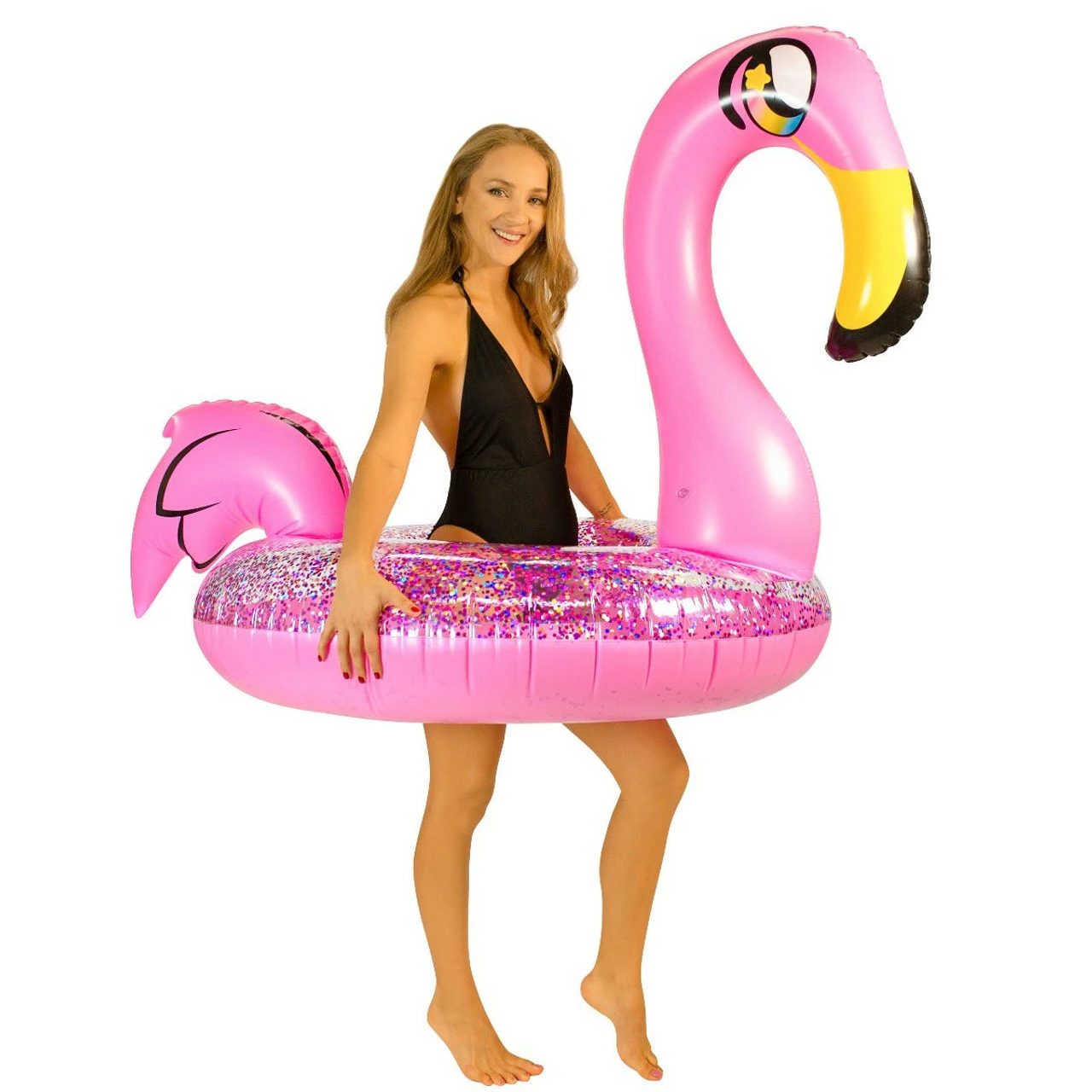 Pool Candy PoolCandy Jumbo Glitter Flamingo Beach & Pool Tube – 48in
