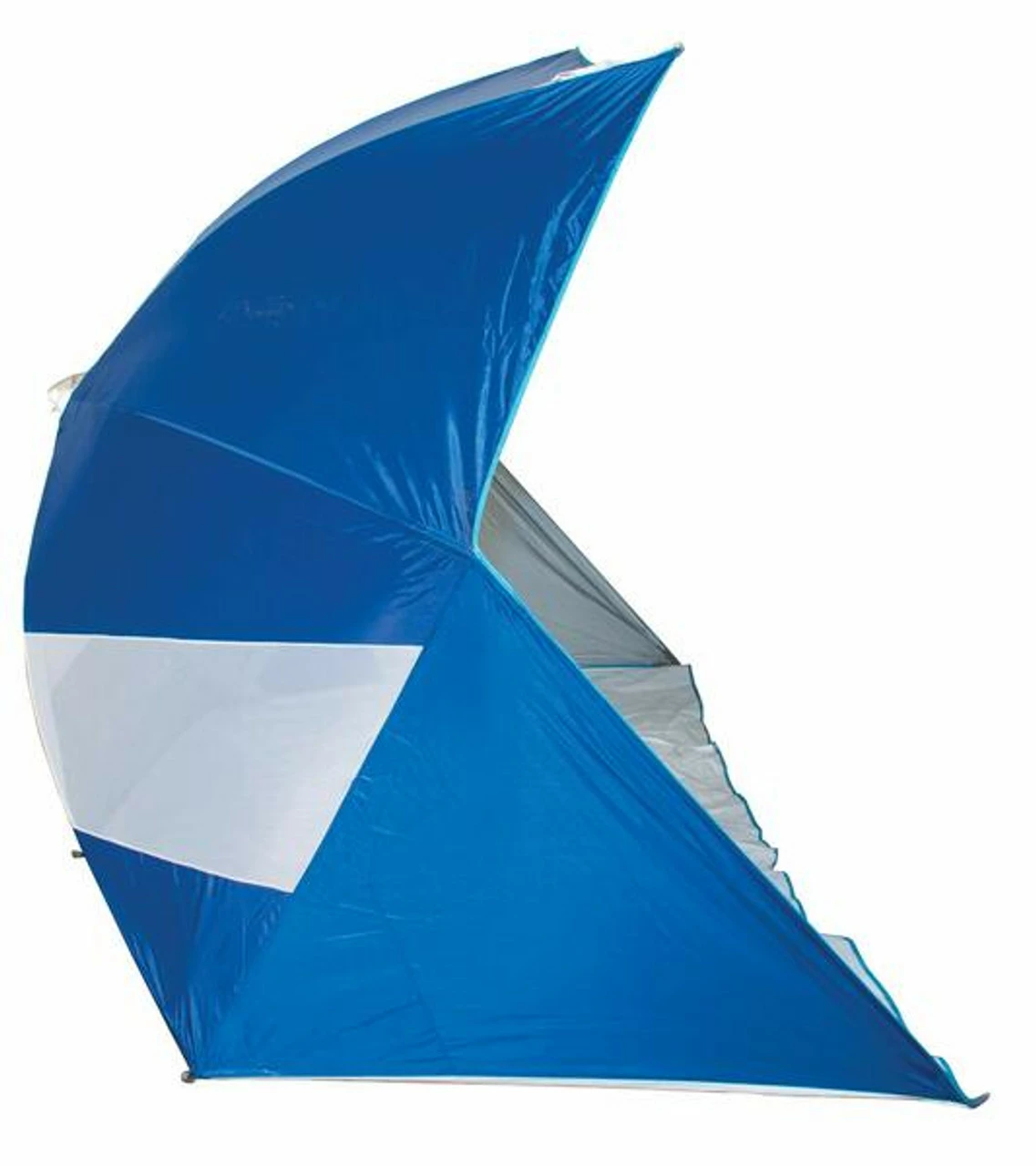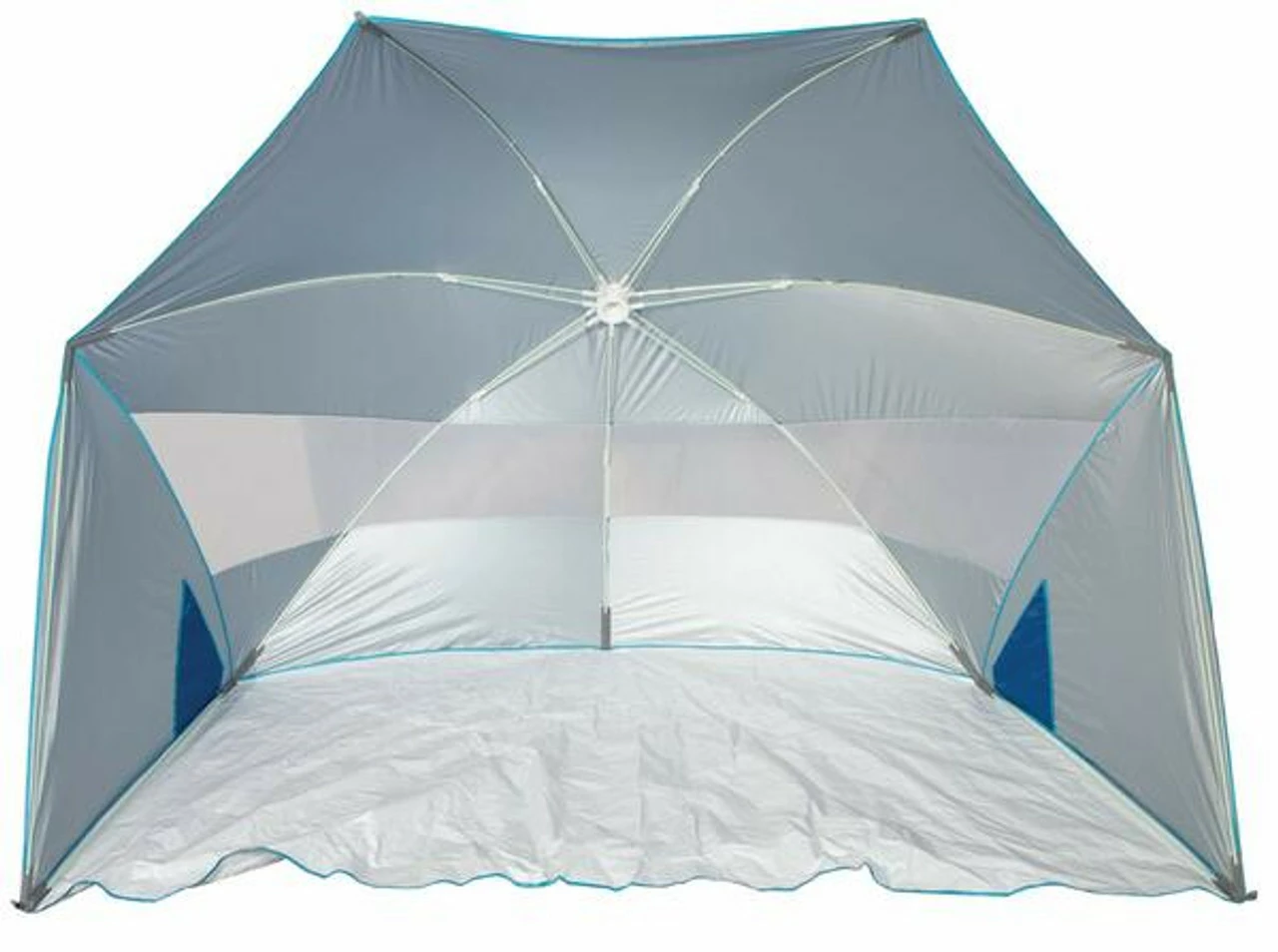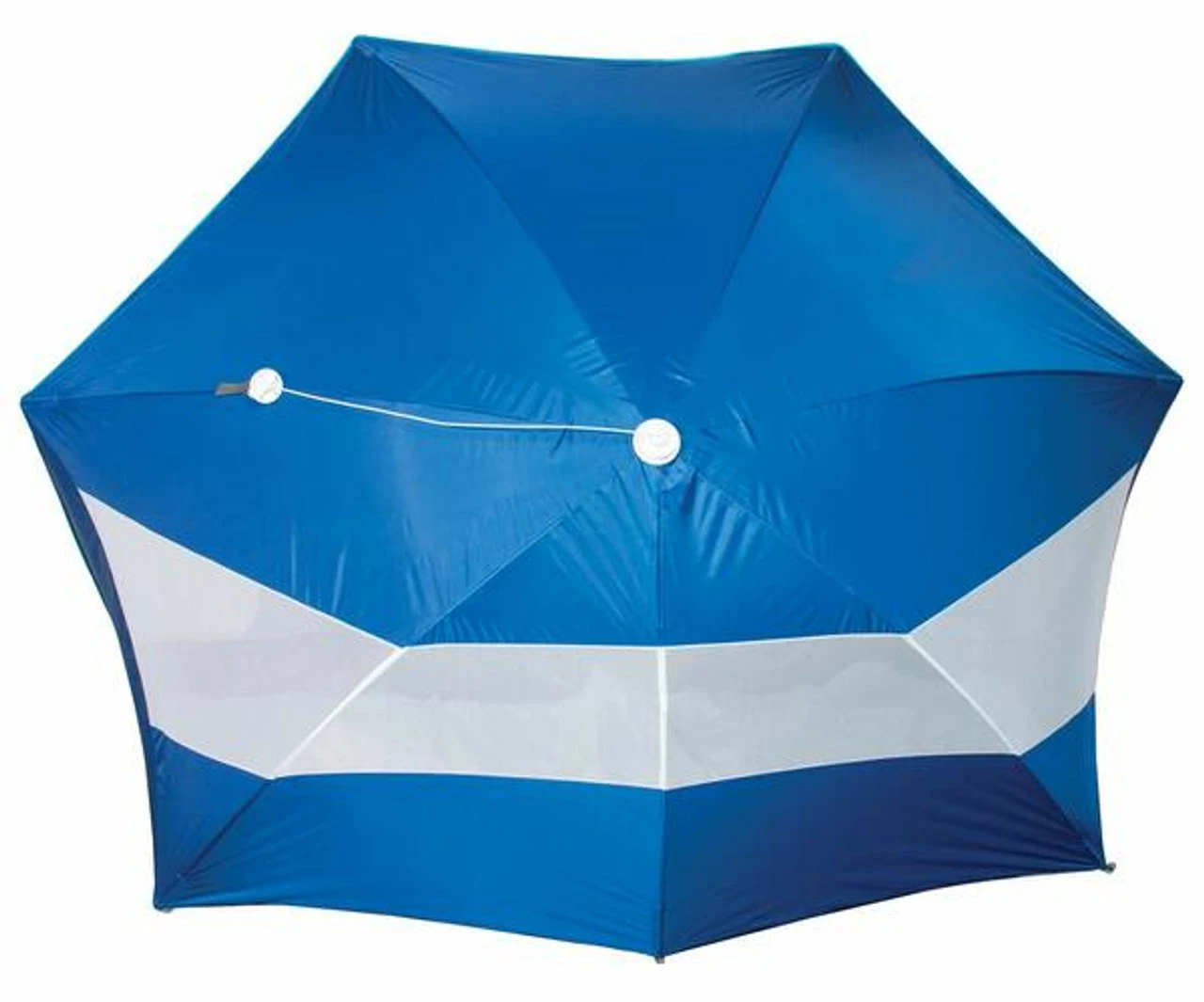 The Rio Beach Speedy Up Cabana will be your new favorite beach accessory. Recommended by the Skin Cancer Foundation, the shelter provides UPF 50+ sun protection. Stay cool in the shade at the beach, park, lakefront, or wherever you need a break from the sun. At only 10 lbs., the cabana is portable, compact and light. Includes a full-size carry bag with a shoulder strap, making it incredibly easy to carry. This 2-person beach sun shelter is easy to set-up and deploys in seconds with the pull of a string. With the integrated wind vent, the pop-up cabana will stay in place during strong winds. The included ground stakes provide extra stability and security.The Rio pop-up beach shelter is ideal for families on the go. It is perfect for the beach, backyard, or any other place you need get some shade from the sun or protection from the elements. SUN PROTECTION: Recommended by the Skin Cancer Foundation for blocking the sun's harmful UVA and UVB rays with UPF 50+ sun protection EASY SET-UP: Set up your beach cabana in minutes with the pull string, and watch as the pop-up deploys in seconds, with no tools required for set up EASY TRANSPORTATION: Portable, compact, and light, and fits inside the included carrying bag with shoulder strap MADE FOR STABILITY: Wind vent for better stability and allows maximum air flow SECURE YOUR SUN SHELTER: Ground stakes are included to help safely secure the wind-resistant beach tent to the sand or ground Sport type: Camping & Hiking Care instructions: Spot Clean Brand: Rio Brands The Rio Beach Speedy Up Cabana will be your new favorite beach accessory. Recommended by the Skin Cancer Foundation, the shelter provides UPF 50+ sun protection. Stay cool in the shade at the beach, park, lakefront, or wherever you need a break from the sun. At only 10 lbs., the cabana is portable, compact and light. Includes a full-size carry bag with a shoulder strap, making it incredibly easy to carry. This 2-person beach sun shelter is easy to set-up and deploys in seconds with the pull of a string. With the integrated wind vent, the pop-up cabana will stay in place during strong winds. The included ground stakes provide extra stability and security.The Rio pop-up beach shelter is ideal for families on the go. It is perfect for the beach, backyard, or any other place you need get some shade from the sun or protection from the elements. SUN PROTECTION: Recommended by the Skin Cancer Foundation for blocking the sun's harmful UVA and UVB rays with UPF 50+ sun protection EASY SET-UP: Set up your beach cabana in minutes with the pull string, and watch as the pop-up deploys in seconds, with no tools required for set up EASY TRANSPORTATION: Portable, compact, and light, and fits inside the included carrying bag with shoulder strap MADE FOR STABILITY: Wind vent for better stability and allows maximum air flow SECURE YOUR SUN SHELTER: Ground stakes are included to help safely secure the wind-resistant beach tent to the sand or ground Sport type: Camping & Hiking Care instructions: Spot Clean Brand: Rio Brands