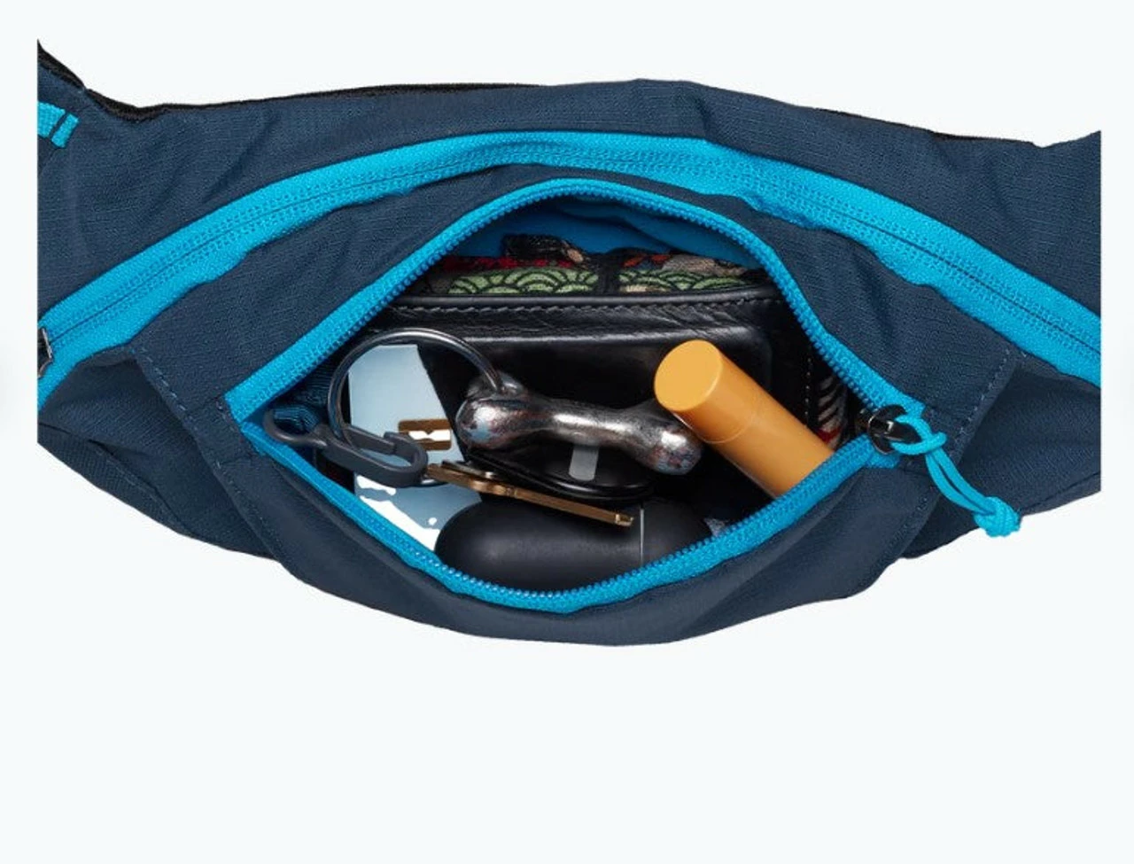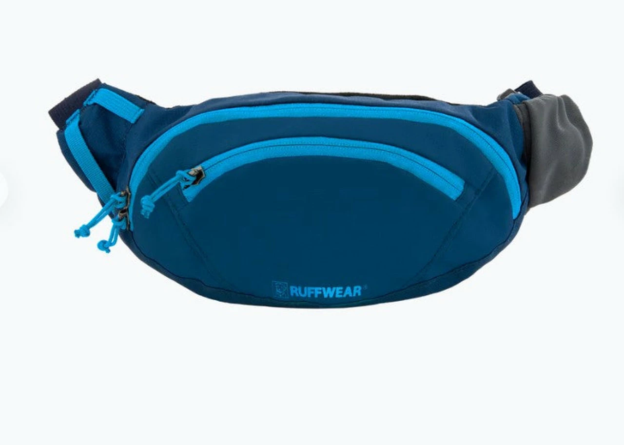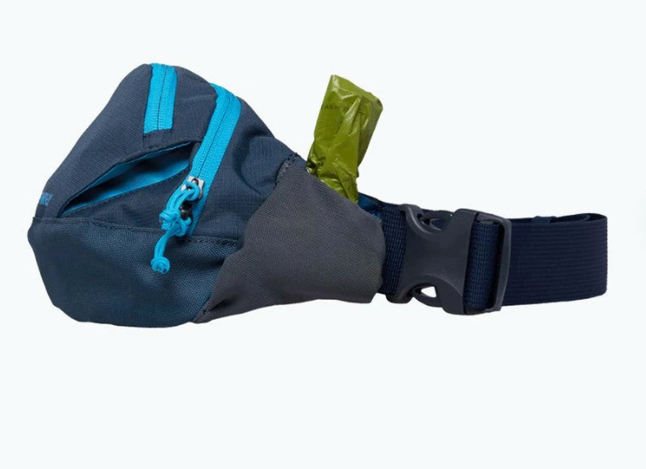 The Home Trail Hip Pack is the day-to-day, stow-and-go bag to carry you and your dog's essentials, keeping your hands free for throwing sticks and doling treats. One size with adjustable belt: 15-54 in Capacity: 1.8 L Phone pocket dimensions: 8.2 in W x 4.7 in H: Quick-grab phone pocket on back panel Low-profile and ergonomic design can be worn around the waist or over the shoulder Adjustable belt with side-release buckle Collapsible mess pocket in zippered main compartment keeps treats or a small fetch toy separate from other items Zippered front compartment includes key hook and space for small essentials External stretch mesh pocket for pick-up bags External gear loops for clicker or small clip-on items