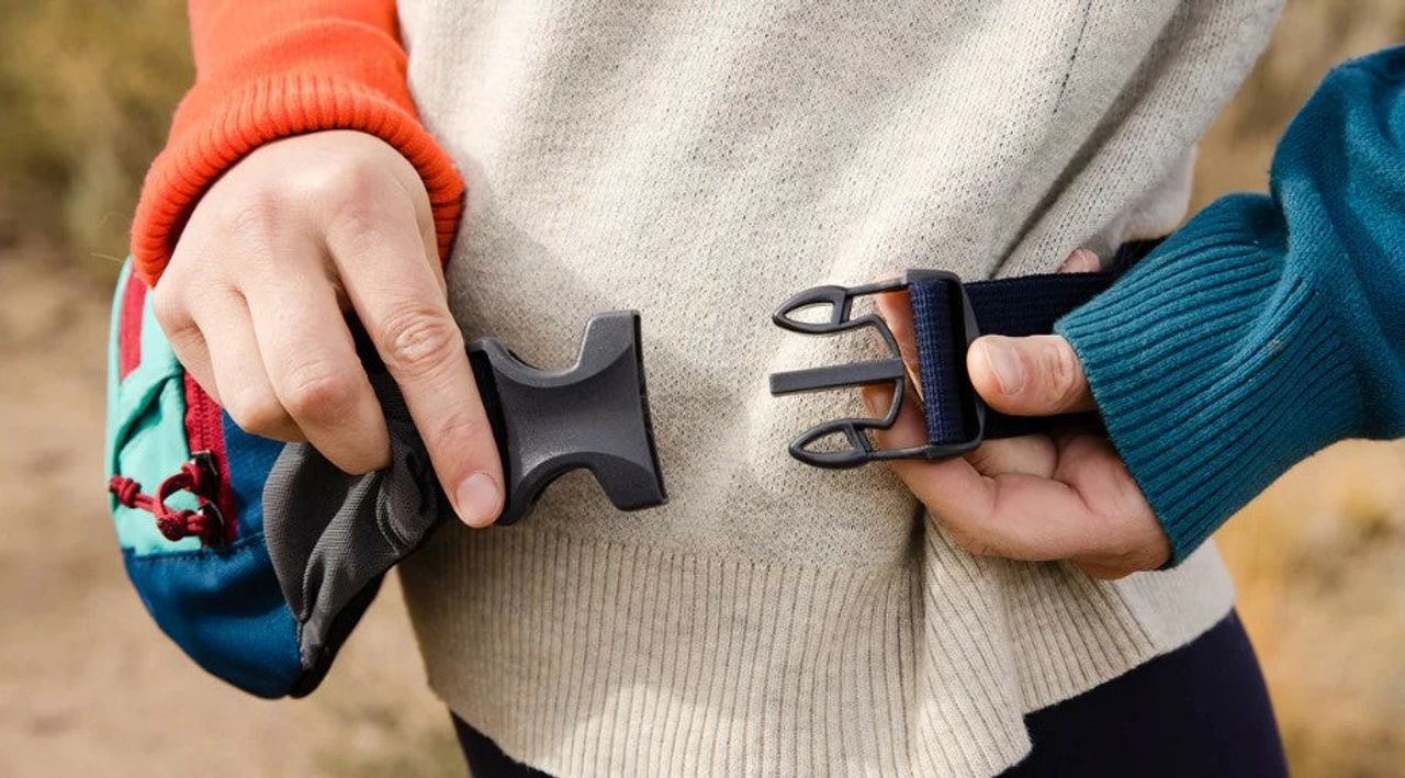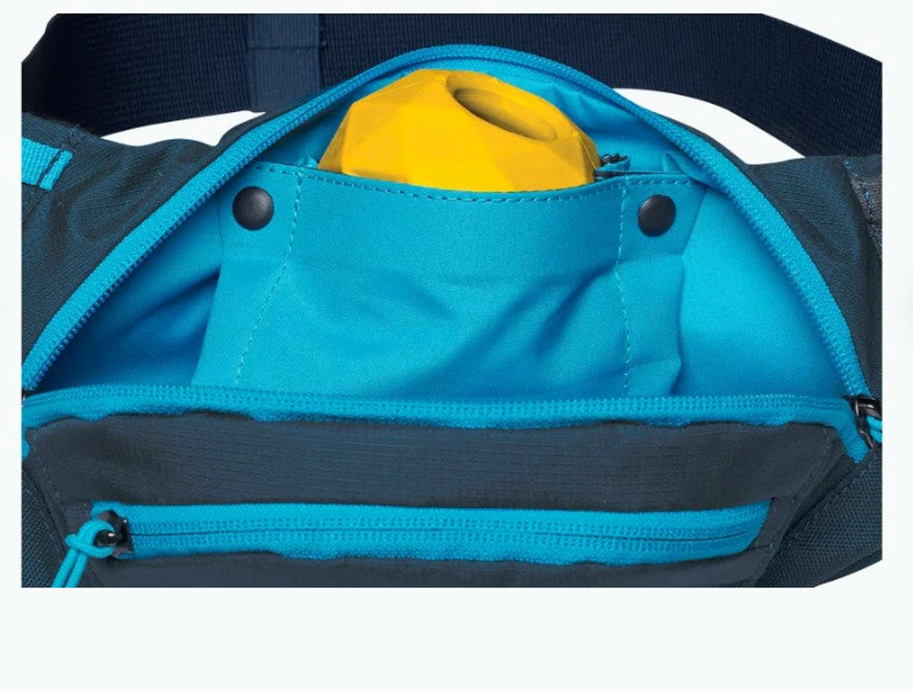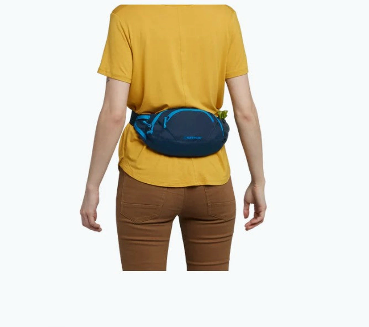 The Home Trail Hip Pack is the day-to-day, stow-and-go bag to carry you and your dog's essentials, keeping your hands free for throwing sticks and doling treats. One size with adjustable belt: 15-54 in Capacity: 1.8 L Phone pocket dimensions: 8.2 in W x 4.7 in H: Quick-grab phone pocket on back panel Low-profile and ergonomic design can be worn around the waist or over the shoulder Adjustable belt with side-release buckle Collapsible mess pocket in zippered main compartment keeps treats or a small fetch toy separate from other items Zippered front compartment includes key hook and space for small essentials External stretch mesh pocket for pick-up bags External gear loops for clicker or small clip-on items