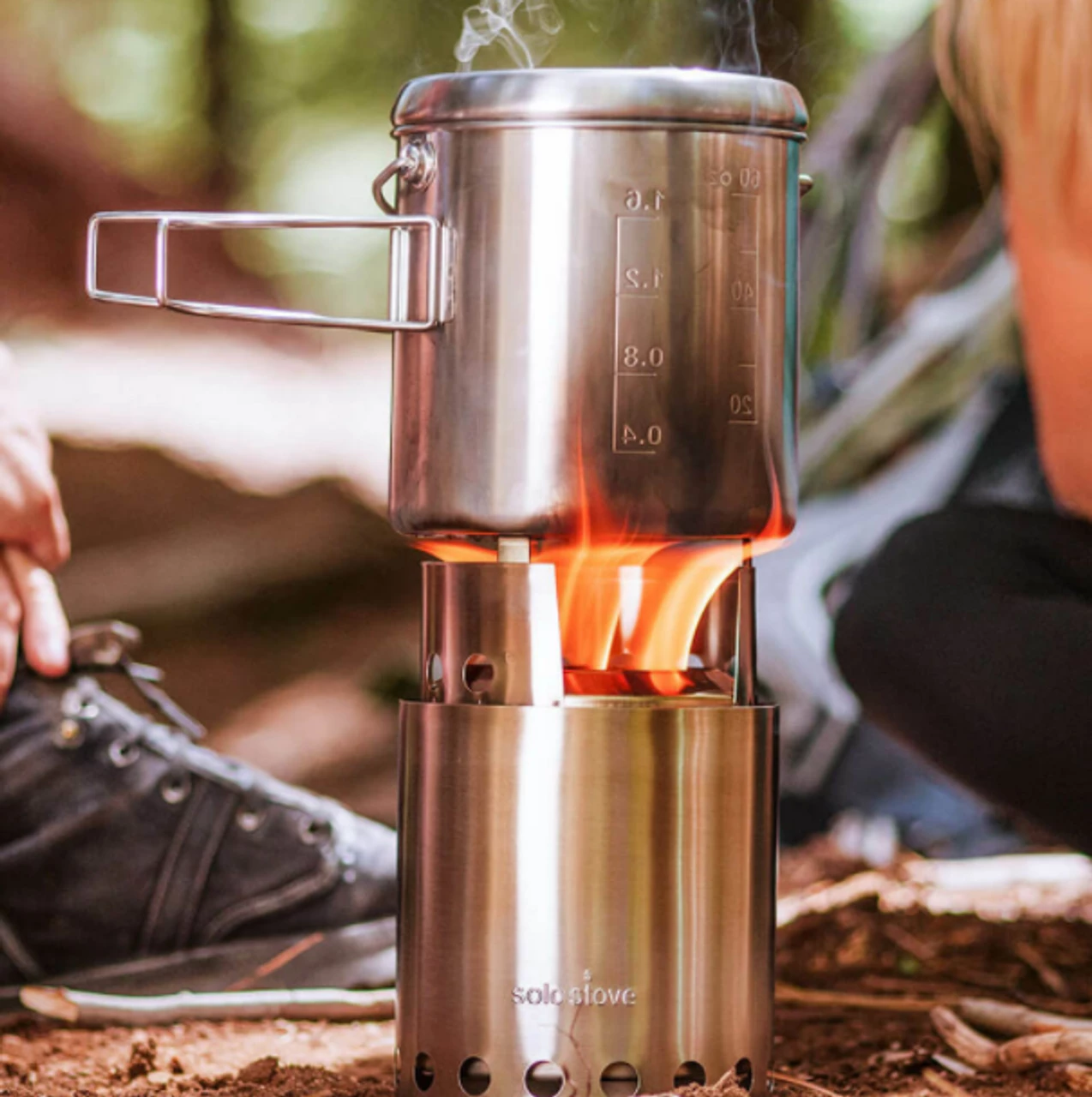 Pot 1800 is the perfect pot designed to use with your Solo Stove® Titan! Craft tasty soups, stews, and hot drinks without taking up precious room in your pack. Solo Stove®Titan nests right inside Pot 1800. See how it works: Pot 1800 Features: Made with durable 304 stainless steel Lockable silicone-coated lift tab Bail handle to hang from Tripod Pour spout Double fold-out handles Volume markings in ounces and milliliters Pot 1800 holds up to 1800 ml. ***Solo Stove Titan® and Tripod are sold separately*** MATERIALS 304 Stainless Steel VOLUME 61 fl. oz (1800mL) WEIGHT 12.5 oz