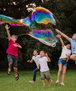 The WOWmazing„ CONCENTRATEKit is designed to entertain both children and adults in a fun outdoor environment. The WOWmazing„ Wandswere designed with two light weight colorful wands firmly connected through an absorbing braided cotton string. This new product design can help develop kids"™ motor skills with engaging healthy outdoor activity. The WOWmazing„ Bubble Concentrateis used together with WOWmazing„ Wands. It's the secret to making our bubbles so big and last so long. A single WOWmazing„ Bubble Concentrate pouch makes at least 1 quart of WOWmazing„ big bubble solution which will generate hundreds of giant bubbles. Just add 1 pouch of WOWmazing„ Bubble Concentrate to one quart of tap water. It is that easy! The WOWmazing„ Bubble Trick Bookletincludes a variety of tips and tricks that will make giant, high flying and long lasting bubbles. 1 set of WOWmazing„ Wands 2 pouches of WOWmazing„ Bubble Concentrate WOWmazing„ Bubble Trick Booklet
