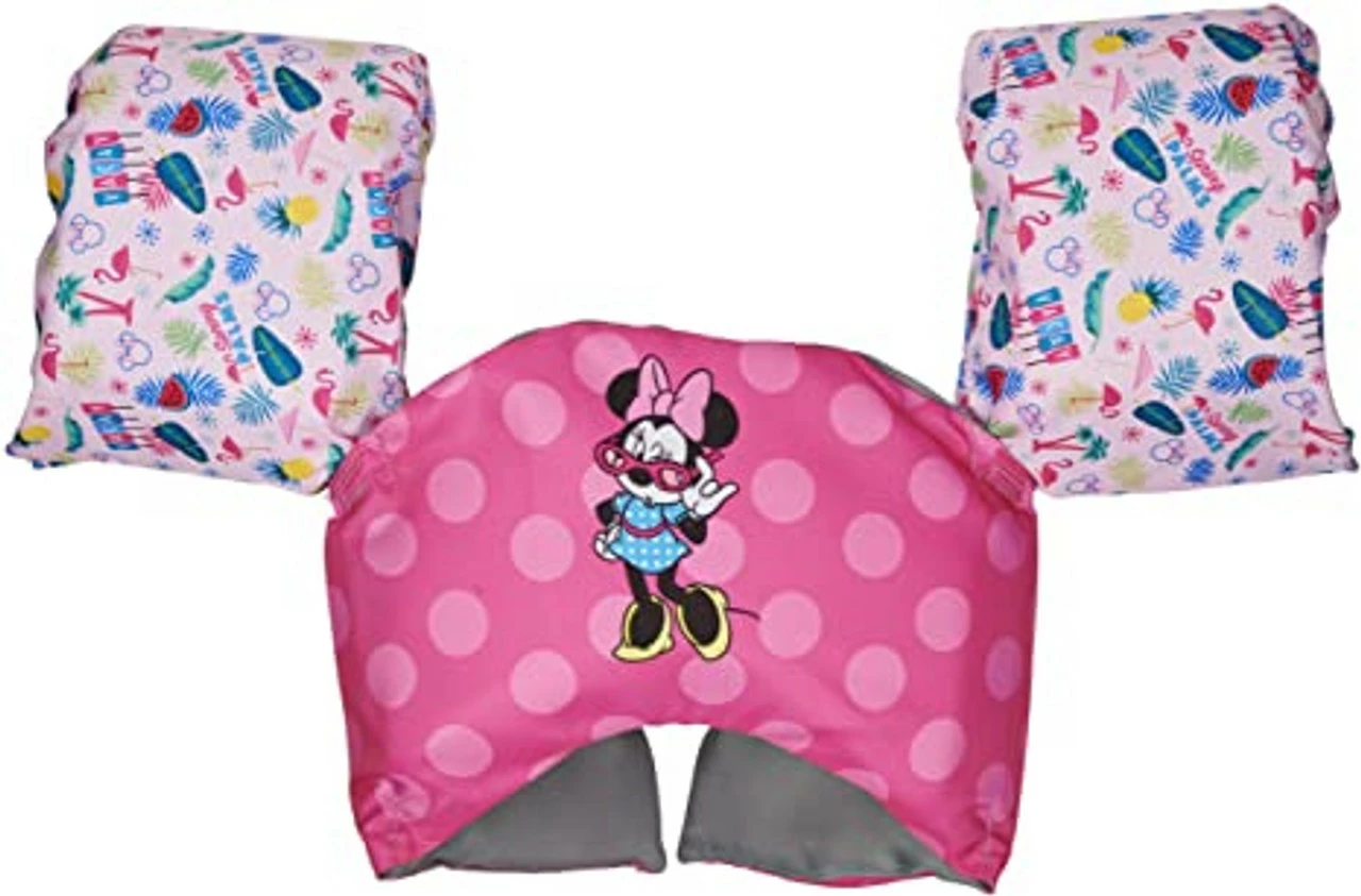 Your child will love learning to swim in this fun trainer life jacket. Designed with permanent built-in chest and arm flotation for greater mobility in the water Adjustable back buckle provides easy on and off for parents, but it is out of reach for kids so they can't remove the vest on their own while swimming Fun to wear and easy to keep clean Coast Guard approved personal flotation device for kids, and it fits most children weighing 30-50 lbs. or 14-23 kg.