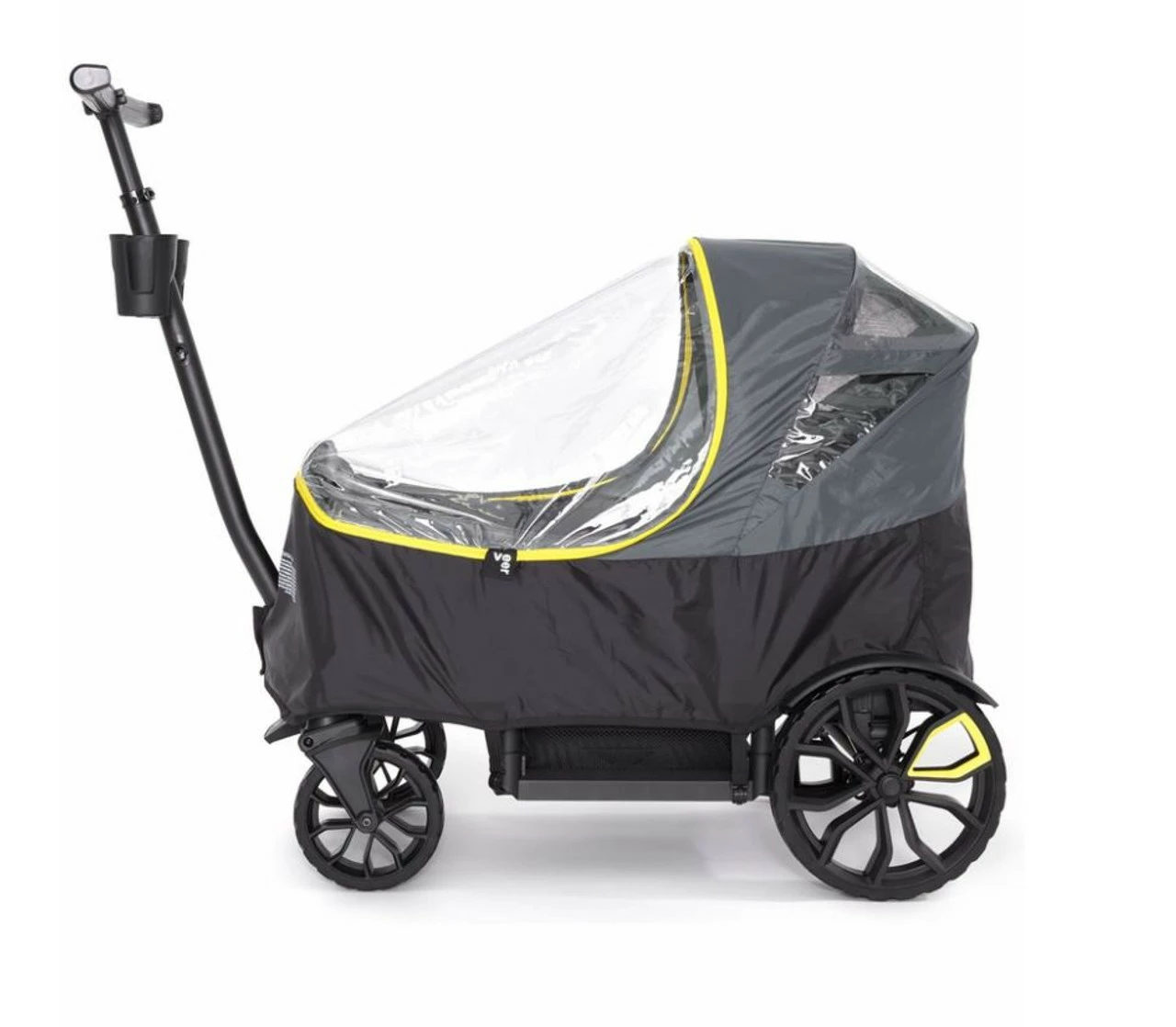 The Weather Cover is built with every detail in mind to ensure happy and dry cruising. Ultra-premium clear plastic panels maximize views for your child to see and multiple vents allow for airflow. Features Customizable coverage for 1 or 2 passengers Coverage for Rear Storage Basket Clear premium plastic panels to maximize view Airflow vents Storage pouch that attaches to Cruiser so cover is always ready