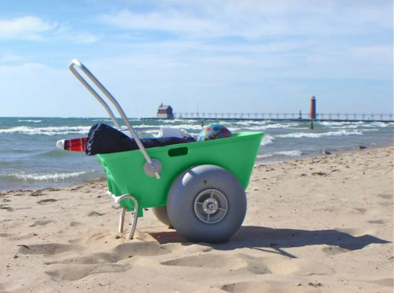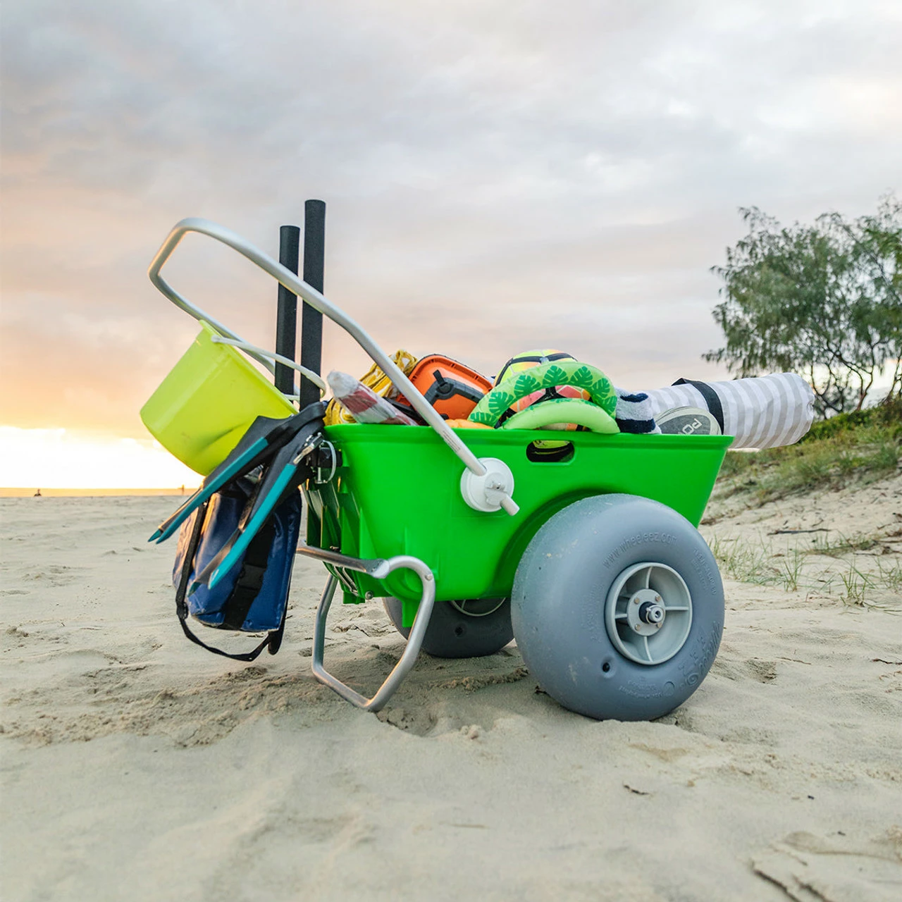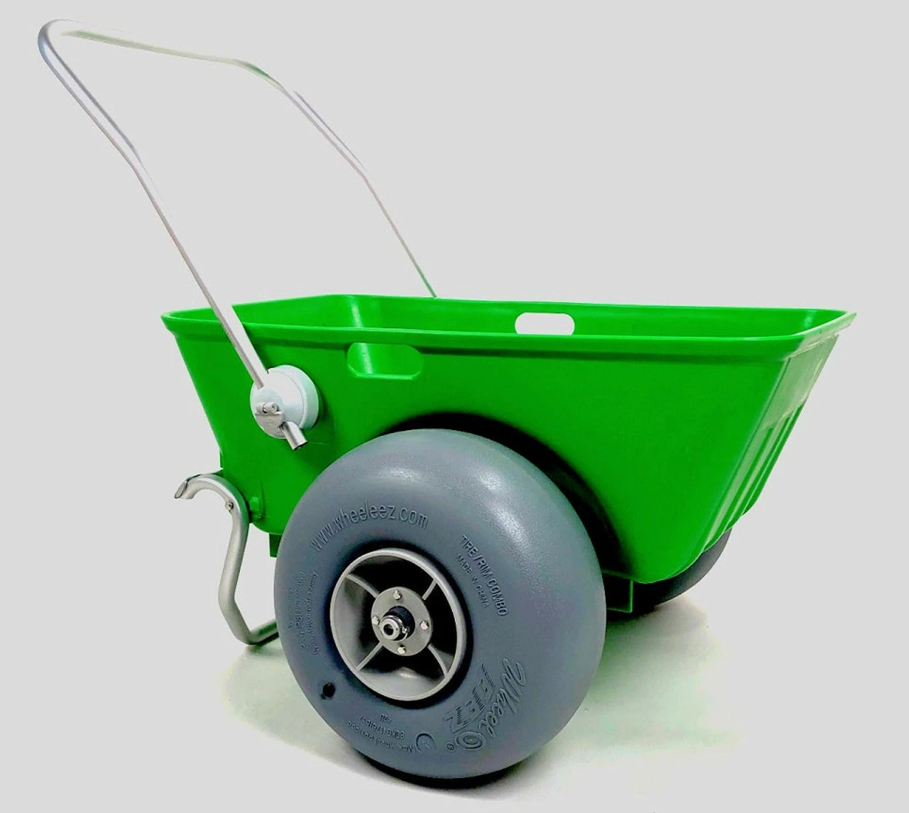 The WheelEEZ® Beach Cart is the perfect solution to transport all your beach gear over soft sand or other challenging terrain in one trip -with low-pressure balloon wheels. Wheel Size: 42 cm (16.5") Polyurethane Wheel (WZ1-42UC) Wheel Dimensions: 42 x 20 cm (16.5 x 7.9") Maximum Payload: 100 kg (220 lbs) Tub Depth:32 cm (12.5") Axle Material: Marine Grade Anodized Aluminum Axle Hardware: Stainless Steel See below for more dimensions Weighs 29 lbs Wheel Size: 42 cm (16.5") Polyurethane Wheel (WZ1-42UC) Wheel Type: Low-Pressure Balloon For Use On: Soft Sand And Other Challenging Terrain Wheel Dimensions: 42 x 20 cm (16.5 x 7.9") Maximum Payload: 100 kg (220 lbs) Tub Capacity: .1 cbm (3.5 cbft) Tub Dimensions: Width At Rim: 56 cm (22") Width inside: (Between Wheel Wells) 36.5 cm (14.4") Length Inside Bottom: 61 cm (24") Length At Rim: 90 cm (35.4") Tub Depth:32 cm (12.5") Axle Material: Marine Grade Anodized Aluminum Axle Dimensions: 25.4 mm x 85.5 cm (1 x 34.4") Hardware Material: Stainless Steel Includes an extra pair of Quick Clip Pins It"™s also ideal for gardening because WheelEEZ® balloon wheels will never damage your sensitive vegetation.